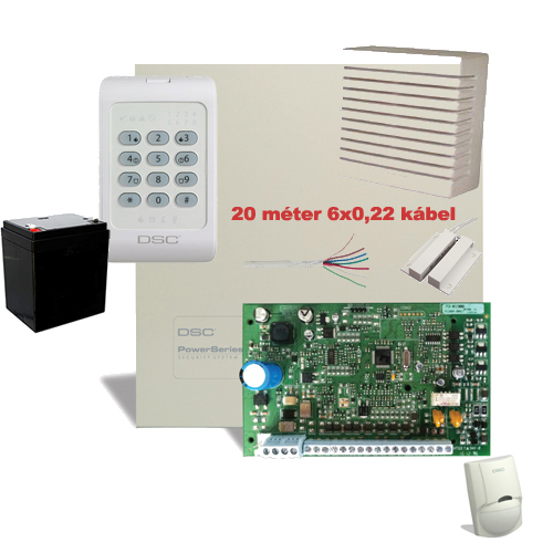 - 1 db DSC PC1404 4 +1 zónás (8-ig bővíthető) riasztóközpont.