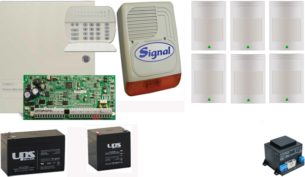 1 db. DSC PC1616 riasztórendszer központ + PK5516 ledes kezelő + fém doboz (114480)