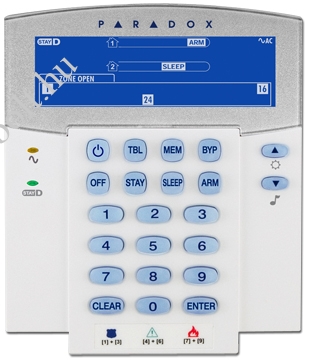- PARADOX K35 régebben K32I. - Fix üzenetek megjelenítésével tájékoztat a rendszer műveleteiről. - 32 zóna állapotát jelzi ki. - 2 partíció. - StayD állapot ikon. - Helyszíni firmware frissíthetőség, 307USB és WinLoad segítségével. - Minden partíció élesített, alvó, stay vagy hatástalanított állapotát kijelzi. - Kijelzi a hibákat, kiiktatott zónákat és a riasztás memóriát. - Állítható háttérvilágítás. - Kompatibilitás: MG5000/5050 és Spectra központok V.2.31. és felette.
