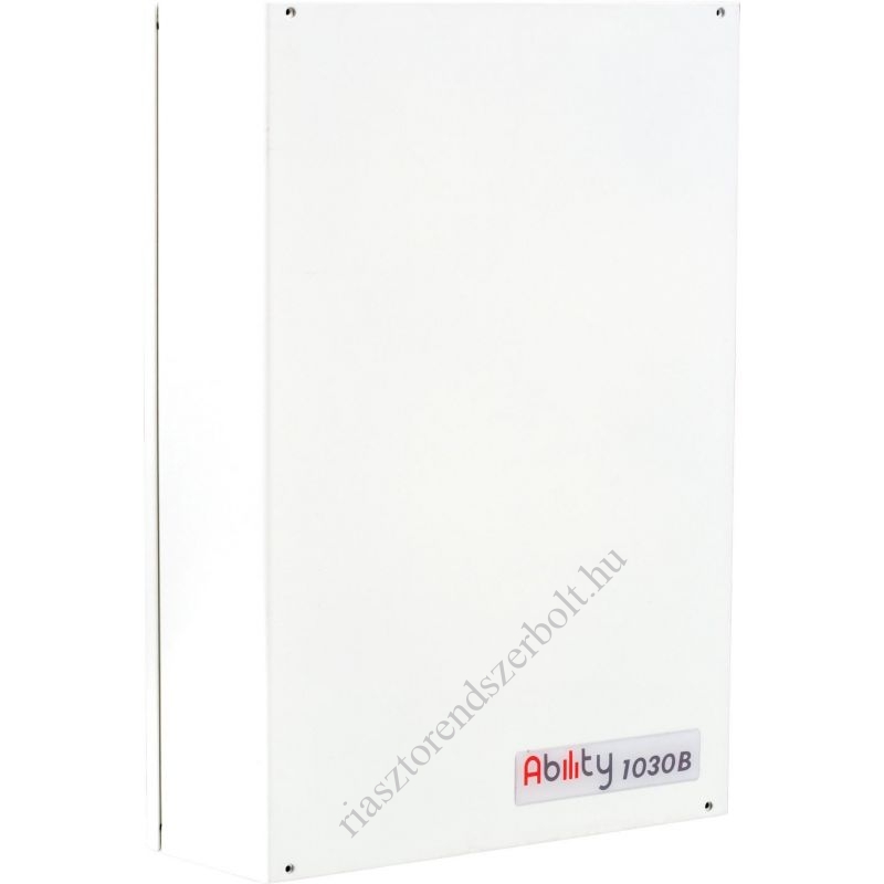 INIM Ability 1030B behatolásjelző központ; 5 terület; 10-30 zóna (duplázható); 1 riasztási relé; 2 OC kimenet; beépített kommunikátor; max. 20 felhasználó; max. 50 kulcs; 250-es eseménymemória; memória 8db, összesen 18s beszédüzenet számára telefonos jelzéshez; 1,3A-es tápegységgel, szabotázsvédett fém dobozban