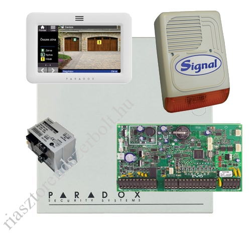 - Riasztóközpont panel.- 8 valódi partíció.- 8 alaplapi vezetékes zóna (zónaduplázással 16).- Zónák maximális száma: 192.- 999 felhasználói kód.- 2048 tárolt eseménytár.- Paradox memóriakulcs támogatás.- 2 A kapcsolóüzemű tápegység, felügyelt AUX kimenet.- Integrált akkumulátortöltő áramkör.- 2 A felügyelt sziréna kimenet.- 5 beépített PGM kimenet (250-re bővíthető).- 4 vezetékes bővítő busz.- 254 modul csatlakoztatható a buszra.- 32 beléptetési pont támogatása.- 32 virtuális zóna.- Vezeték nélküli bővíthetőség.- Letöltő/feltöltő szoftver: Baby Ware.- AUX kimenet vezérlése nyomógombbal.- Egyedi alapértelmezések beállítása.- Nyomógombos szoftver reset.- Beépített valósidejű óra.- Automatikus (Nincs mozgás) élesítés ütemezése.- Nyári-téli időszámítás.- Eseménygenerálás modul hozzáadásnál vagy eltávolításnál.- CleanMe kompatibilis 2 vezetékes füstbemenet.- Analóg telefonvonali kommunikátor.- Szabadalmaztatott tárcsázó áramkör.- VoIP vonal támogatás.- Internetes TCP/IP kommunikáció, E-mail küldés, felügyelet támogatása opcionális IP100 modullal.- Tápfeszültség: 16 VAC, 40/75 VA transzformátorról (nem tartozék).- Működési hőmérséklet: -20°C - +55°C.- 32-karakteres LCD programozható címkékkel (Memóriakulccsal, WinLoad-dal, NEware-rel vagy a Modul."Üzenet mindenkinek" szolgáltatással).- Kék színű háttérvilágítás.- Egyszerűsített távirányító programozás.- Zóna alarm kijelzés: a risztásban lévő zónát a rendszer hatástalanításáig kijelzi.- A firmware a WinLoad és a CONV4USB modul segítségével frissíthető.- Kompatibilis a DGP-848, EVO96, EVO48 és EVO192 központokkal.- Horvát,angol,spanyol,cseh,magyar,német,héber,olasz,lengyel,portugál,orosz,svéd vagy török nyelven.- Egy vagy több partícióhoz rendelhető.- 1 címezhető zóna és 1 PGM kimenet.- Függetlenül állítható zóna csipogás.- 14 akció gomb kombináció.- 3 pánik gomb kombináció.- Állítható háttérvilágítás, kontraszt és görgetési sebesség.- 12 vagy 24 óra formátumú időkijelzés.- Új, lekerekített, modern megjelenésű burkolattal.