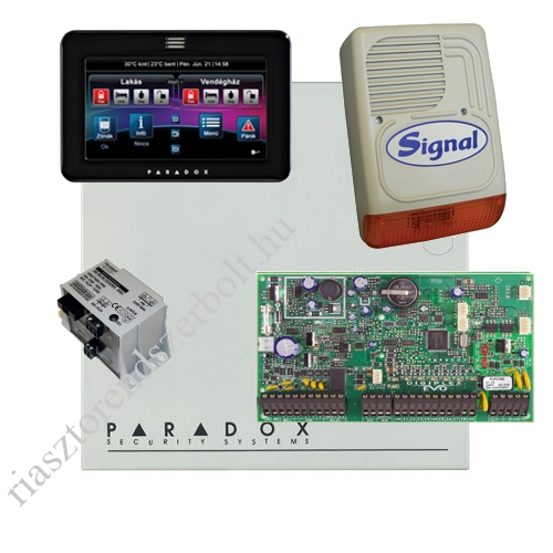 - Riasztóközpont panel.- 8 valódi partíció.- 8 alaplapi vezetékes zóna (zónaduplázással 16).- Zónák maximális száma: 192.- 999 felhasználói kód.- 2048 tárolt eseménytár.- Paradox memóriakulcs támogatás.- 2 A kapcsolóüzemű tápegység, felügyelt AUX kimenet.- Integrált akkumulátortöltő áramkör.- 2 A felügyelt sziréna kimenet.- 5 beépített PGM kimenet (250-re bővíthető).- 4 vezetékes bővítő busz.- 254 modul csatlakoztatható a buszra.- 32 beléptetési pont támogatása.- 32 virtuális zóna.- Vezeték nélküli bővíthetőség.- Letöltő/feltöltő szoftver: Baby Ware.- AUX kimenet vezérlése nyomógombbal.- Egyedi alapértelmezések beállítása.- Nyomógombos szoftver reset.- Beépített valósidejű óra.- Automatikus (Nincs mozgás) élesítés ütemezése.- Nyári-téli időszámítás.- Eseménygenerálás modul hozzáadásnál vagy eltávolításnál.- CleanMe kompatibilis 2 vezetékes füstbemenet.- Analóg telefonvonali kommunikátor.- Szabadalmaztatott tárcsázó áramkör.- VoIP vonal támogatás.- Internetes TCP/IP kommunikáció, E-mail küldés, felügyelet támogatása opcionális IP100 modullal.- Tápfeszültség: 16 VAC, 40/75 VA transzformátorról (nem tartozék).- Működési hőmérséklet: -20°C - +55°C.- 32-karakteres LCD programozható címkékkel (Memóriakulccsal, WinLoad-dal, NEware-rel vagy a Modul."Üzenet mindenkinek" szolgáltatással).- Kék színű háttérvilágítás.- Egyszerűsített távirányító programozás.- Zóna alarm kijelzés: a risztásban lévő zónát a rendszer hatástalanításáig kijelzi.- A firmware a WinLoad és a CONV4USB modul segítségével frissíthető.- Kompatibilis a DGP-848, EVO96, EVO48 és EVO192 központokkal.- Horvát,angol,spanyol,cseh,magyar,német,héber,olasz,lengyel,portugál,orosz,svéd vagy török nyelven.- Egy vagy több partícióhoz rendelhető.- 1 címezhető zóna és 1 PGM kimenet.- Függetlenül állítható zóna csipogás.- 14 akció gomb kombináció.- 3 pánik gomb kombináció.- Állítható háttérvilágítás, kontraszt és görgetési sebesség.- 12 vagy 24 óra formátumú időkijelzés.- Új, lekerekített, modern megjelenésű burkolattal.