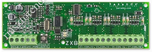 - Kompatibilis a Spectra SP sorozattal, az E55/E65, MG5000 és MG5050 központokkal. - 8 hagyományos vezetékes zóna csatlakoztatható. - 1 PGM kimenet. - Zóna bemenetet használ szabotázskapcsoló bemenetnek. - ZX8SP modulok max száma: 3 (SP központtal), 1(Spectra központtal). - Kimenetek száma: 1. - Kimenet terhelhetősége: 50mA. - Kompatibilitás: Minden Spectra SP központtal, minden Spectra (V2.0 vagy újabb), E55/E65, MG5000 és MG5050 központokkal. - WinLoad szoftverrel (V2.03 vagy magasabb) kompatibilis. - Panelszintű kiszerelés. - Tápfeszültség: 12-16VDC. - Áramfelvétel: 28mA. - Működési hőmérséklet: -20°C - + 50°C.