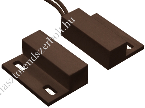 Hosszú élettartamú, kiváló minőségű, felületre szerelhető nyitásérzékelő. A gyártás során felhasznált minőségi anyagok garantálják a biztonságos érzékelést. Javasolt felhasználási terület, fa és műanyag nyílászárók védelme. - Felületre szerelhető érzékelő és mágneses ellendarab. - Vezeték az érzékelő oldalán kivezetve. - Vezetékhossz: 45 cm. - Rögzítő füllel ellátva. - Alaphelyzetben zárt, NC kontaktust adó Reed-relé. - Érzékelési távolság: 19mm. - Barna, műanyag ház. - Kontaktus teljesítmény aránya: 10W/VA. - Maximális kapcsolási feszültség: 200VDC. - Maximális kapcsolási áramerősség: 0.5A. - Kontaktus ellenállása: min. 150 milli ohm. - Élettartam: 10000000 érzékelés. - Szigetelési ellenállás: 100 Mega ohm. - Ütési ellenállás: 30G 0.011 mp-re. - Rezgési ellenállás: 20G (10Hz - 1000Hz). - Érzékelő és mágnes mérete: 28mm x 20mm x 9.5mm.