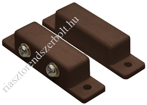 Hosszú élettartamú, kiváló minőségű, felületre szerelhető nyitásérzékelő. A gyártás során felhasznált minőségi anyagok garantálják a biztonságos érzékelést. Javasolt felhasználási terület, fa és műanyag nyílászárók védelme. - Felületre szerelhető érzékelő és mágneses ellendarab. - Bekötése az érzékelő felületén lévő sorkapocsba történik. - Rögzítő füllel ellátva. - Alaphelyzetben zárt, NC kontaktust adó Reed-relé. - Érzékelési távolság: 19mm. - Barna, műanyag ház. - Kontaktus teljesítmény aránya: 10W/VA. - Maximális kapcsolási feszültség: 200VDC. - Maximális kapcsolási áramerősség: 0.5A. - Kontaktus ellenállása: min. 150 milli ohm. - Élettartam: 10000000 érzékelés. - Szigetelési ellenállás: 100 Mega ohm. - Ütési ellenállás: 30G 0.011 mp-re. - Rezgési ellenállás: 20G (10Hz - 1000Hz). - Érzékelő és mágnes mérete: 54.6mm x 12.6mm x 12.8mm.