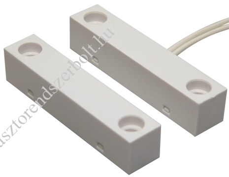 Hosszú élettartamú, kiváló minőségű, felületre szerelhető nyitásérzékelő. A gyártás során felhasznált minőségi anyagok garantálják a biztonságos érzékelést. Javasolt felhasználási terület, fa és műanyag nyílászárók védelme. - Felületre szerelhető érzékelő és mágneses ellendarab. - Vezeték az érzékelő közepén kivezetve. - Vezetékhossz: 45 cm. - Alaphelyzetben zárt, NC kontaktust adó Reed-relé. - Érzékelési távolság: 16mm. - Fehér, műanyag ház. - Kontaktus teljesítmény aránya: 10W/VA. - Maximális kapcsolási feszültség: 200VDC. - Maximális kapcsolási áramerősség: 0.5A. - Kontaktus ellenállása: min. 150 milli ohm. - Élettartam: 10000000 érzékelés. - Szigetelési ellenállás: 100 Mega ohm. - Ütési ellenállás: 30G 0.011 mp-re. - Rezgési ellenállás: 20G (10Hz - 1000Hz). - Érzékelő és mágnes mérete: 50mm x 10mm x 10.5mm.