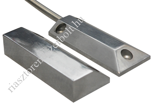 Hosszú élettartamú, kiváló minőségű, felületre szerelhető nyitásérzékelő. A gyártás során felhasznált minőségi anyagok garantálják a biztonságos érzékelést. Javasolt felhasználási terület, ipari rolókapuk és garázsajtók védelme. Nagy érzékelési távolságának és páncélozott vezetékvédelmének köszönhetően, szinte bármilyen környezetben alkalmazható. - Felületre szerelhető érzékelő és mágneses ellendarab. - Páncélozott vezetékvédelem. - Vezeték az érzékelő végén kivezetve. - Vezetékhossz: 90 cm. - Alaphelyzetben zárt, NC kontaktust adó Reed-relé. - Érzékelési távolság: 50mm. - Alumínium ház. - Kontaktus teljesítmény aránya: 10W/VA. - Maximális kapcsolási feszültség: 200VDC. - Maximális kapcsolási áramerősség: 0.5A. - Kontaktus ellenállása: min. 150 milli ohm. - Élettartam: 10000000 érzékelés. - Szigetelési ellenállás: 100 Mega ohm. - Ütési ellenállás: 30G 0.011 mp-re. - Rezgési ellenállás: 20G (10Hz - 1000Hz). - Érzékelő mérete: 90mm x 38mm x 12mm. - Mágnes mérete: 90mm x 38mm x 20mm.