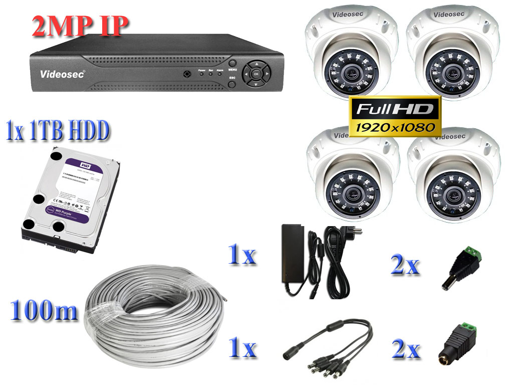 4 db. Videosec IPD-224 DOME IP kamera 2MP fix optika 3,6mm (IPD-224)