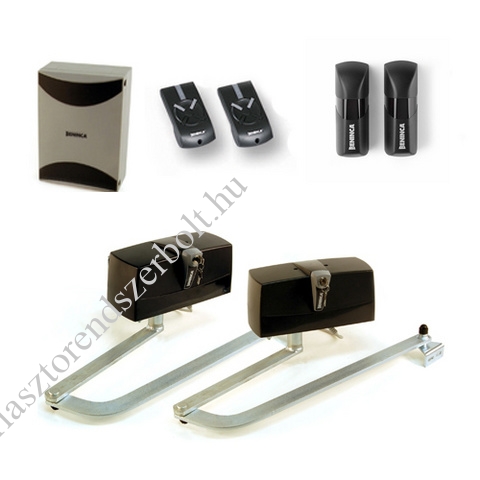 BENINCA - Csuklókaros kapumozgató szett kétszárnyas kapukhoz, max 3m/szárny, max 400kg/szárny, gyalogos bejáró funkció, lassítás, saját végálláskezelés, 2db PR.45E motor karral, HEAD vezérlés és rádióvevő, 1 pár Pupilla fotocella, 2db TO.GO4 adó, mélyen ülő kapukhoz , 230Vac Ajánlott: Nagy és nehéz mélyen ülő kapukra ajánljuk, óránként 10-15 munkaciklusig. Nagy hatótávolságú, ugrókódos rádiórendszer. A megszokott BENINCA minőség