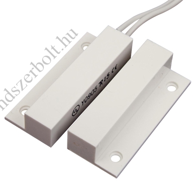 - Felületszerelhető. - Két csavarral és/vagy hátoldali tapadószalaggal rögzíthető. - Vezeték az érzékelő oldalán kivezetve. - NC kontaktust adó Reed-relé. - Fehér és barna színben. - Kontaktus terhelhetősége: 30 Vdc, 0,5 A. - Vezetékhossz: 50 cm. - Méret: 34mm x 14mm x 7mm. - Alkalmazható fa és kisebb nagyságú fémajtóknál.