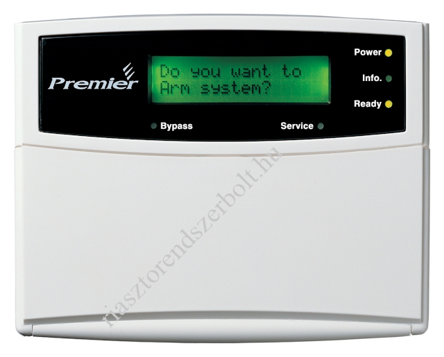 LCD kezelő, maximum 32 karakter, 1 programozható kimenet, 2 zóna bemenet, zöld LCD kijelző, EN 50131 Class 3